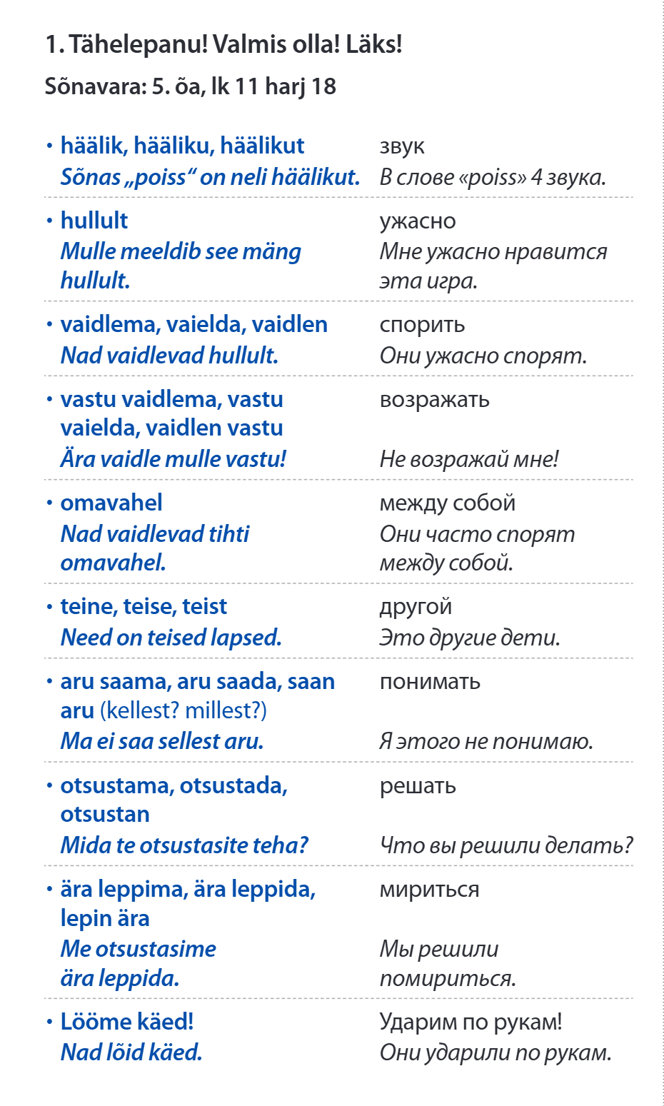 1. Tähelepanu! Valmis olla! Läks! Sõnavara: 5. õa, lk 11 harj 18