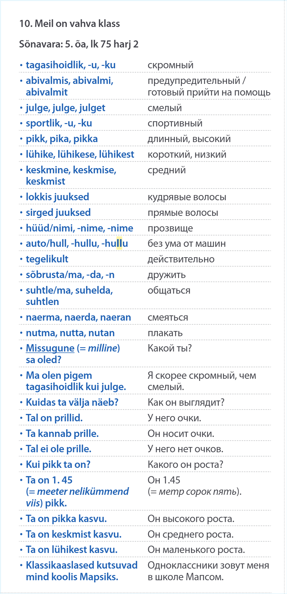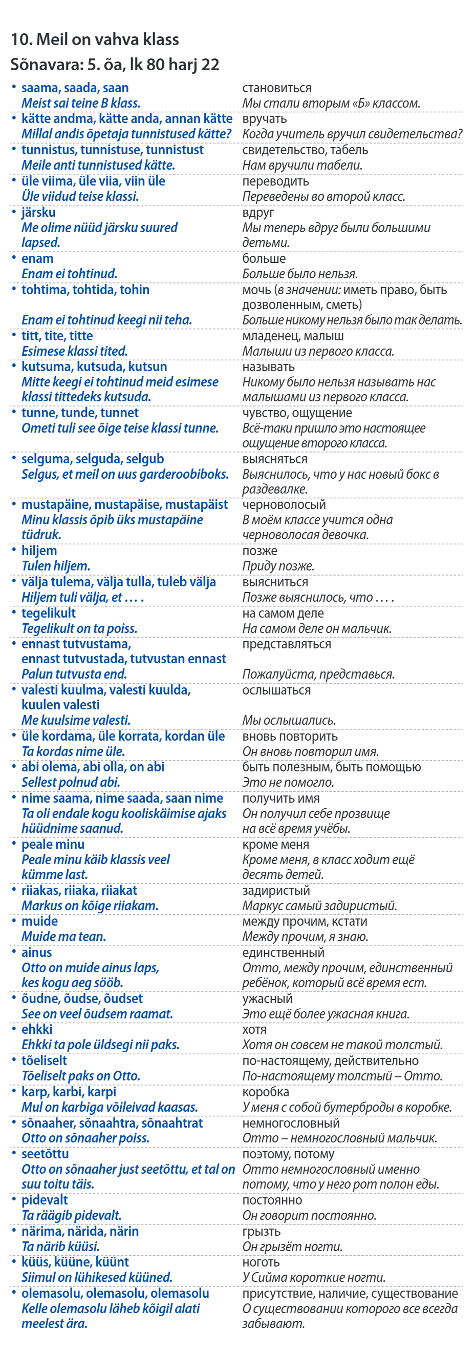10. Meil on vahva klass Sõnavara: 5. õa, lk 80 harj 22