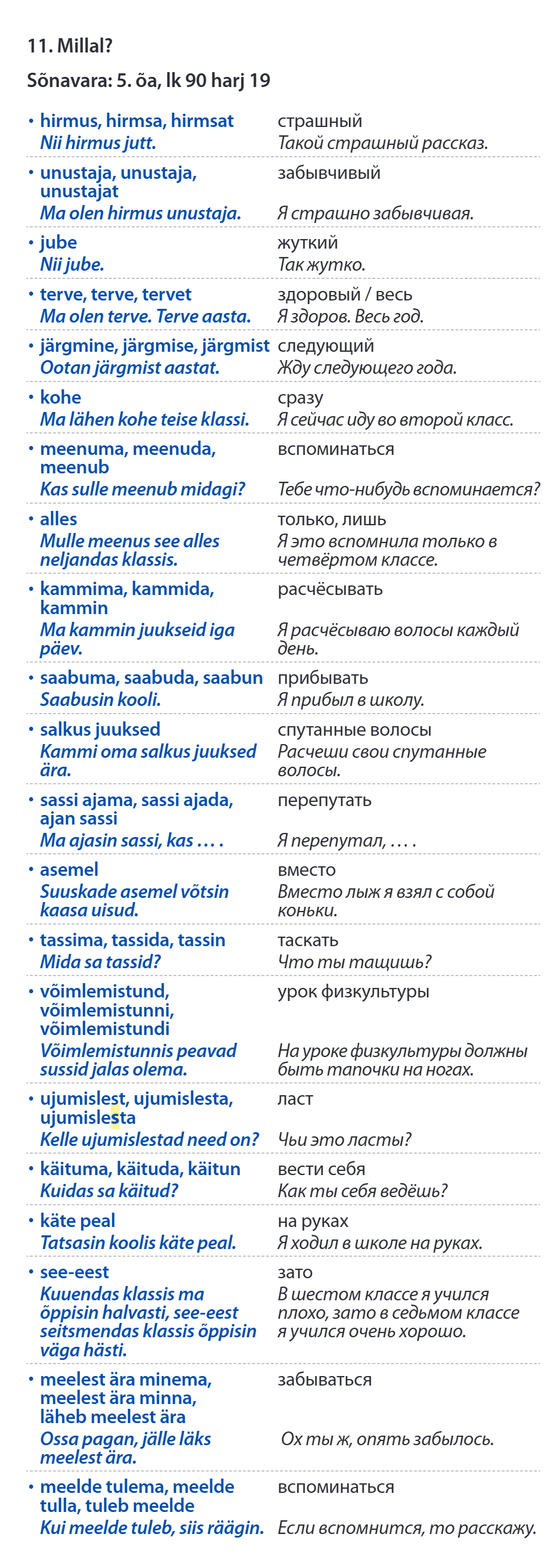 11. Millal? Sõnavara: 5. õa, lk 90 harj 19