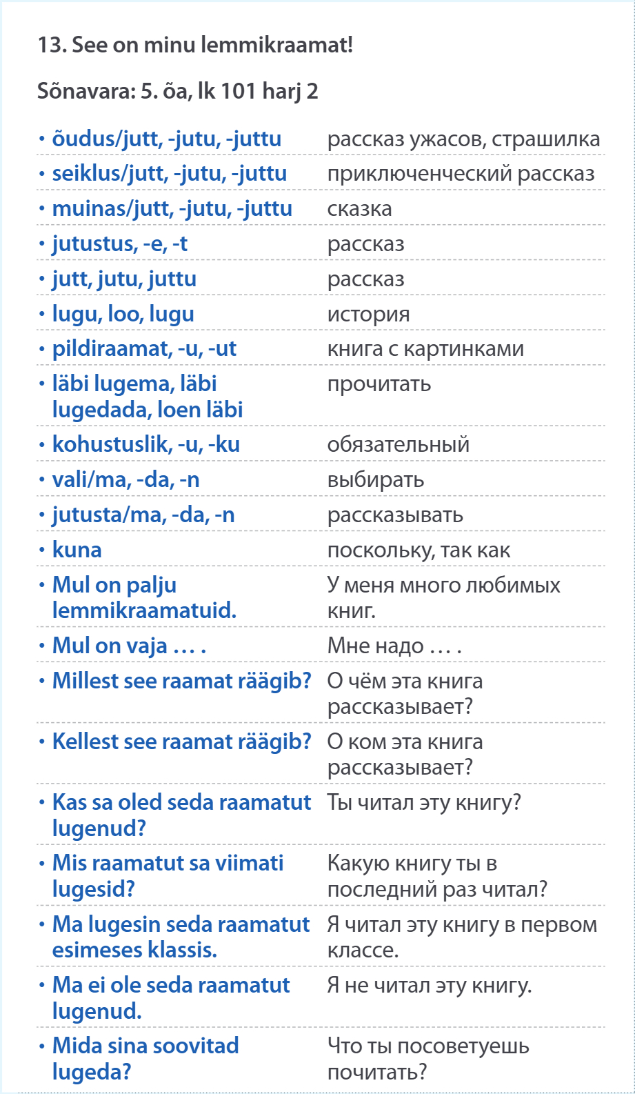 13. See on minu lemmikraamat! Sõnavara: 5. õa, lk 101 harj 2