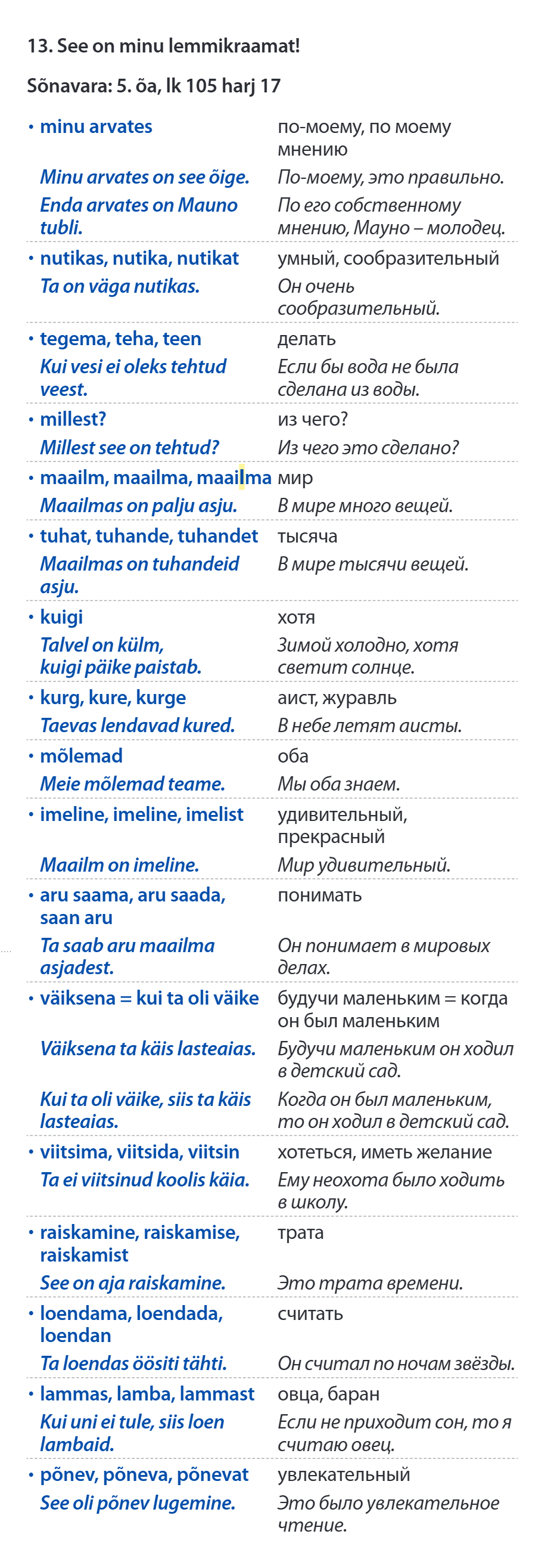 13. See on minu lemmikraamat! Sõnavara: 5. õa, lk 105 harj 17