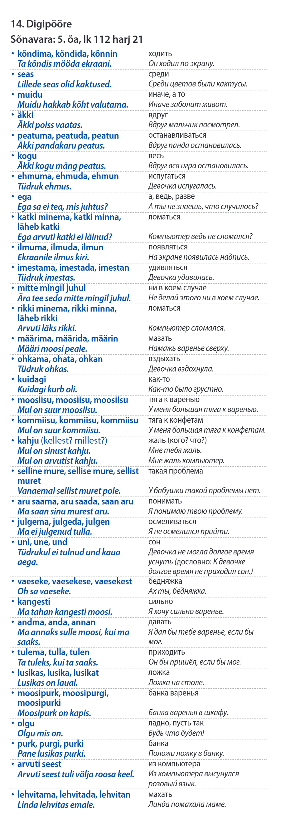 14. Digipööre Sõnavara: 5. õa, lk 112 harj 21