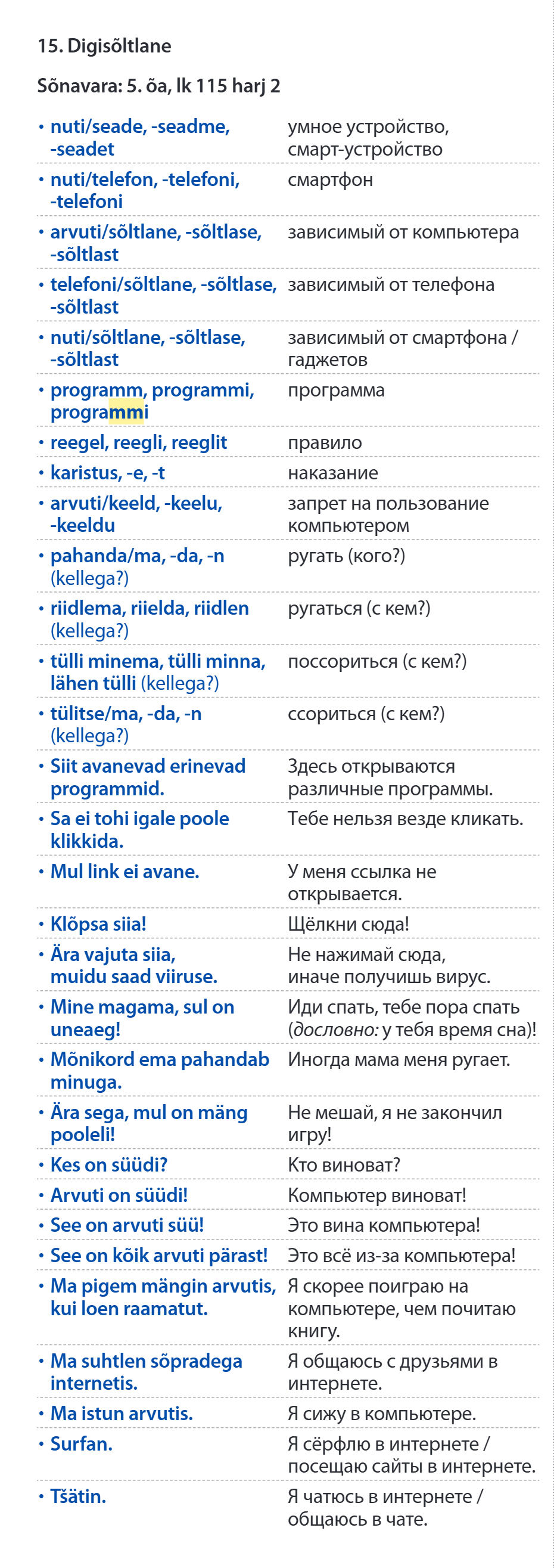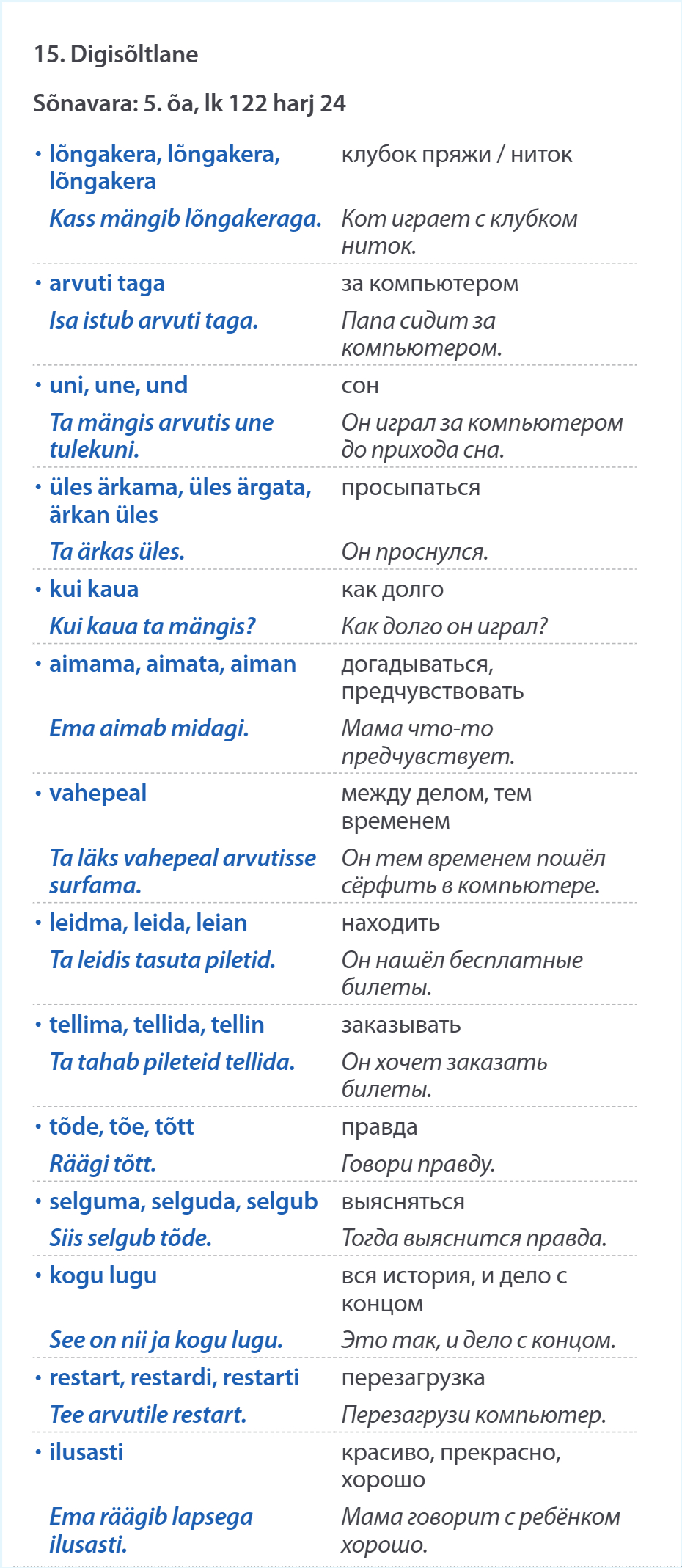 15. Digisõltlane Sõnavara: 5. õa, lk 122 harj 24