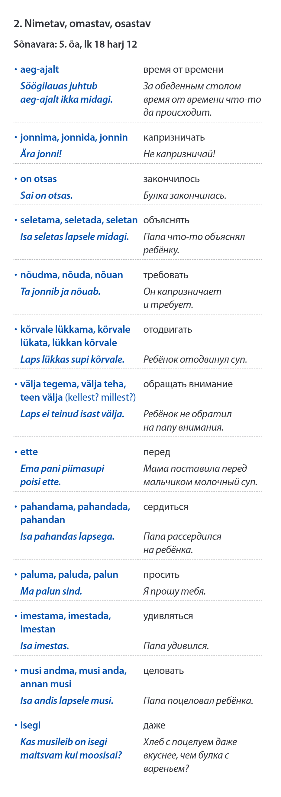 2. Nimetav, omastav, osastav Sõnavara: 5. õa, lk 18 harj 12