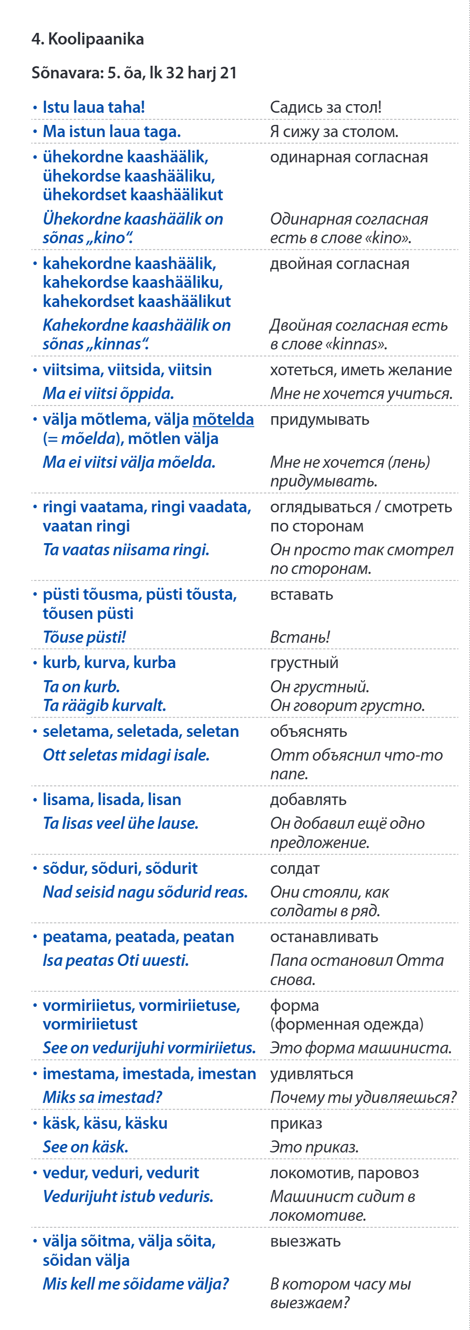 4. Koolipaanika Sõnavara: 5. õa, lk 32 harj 21