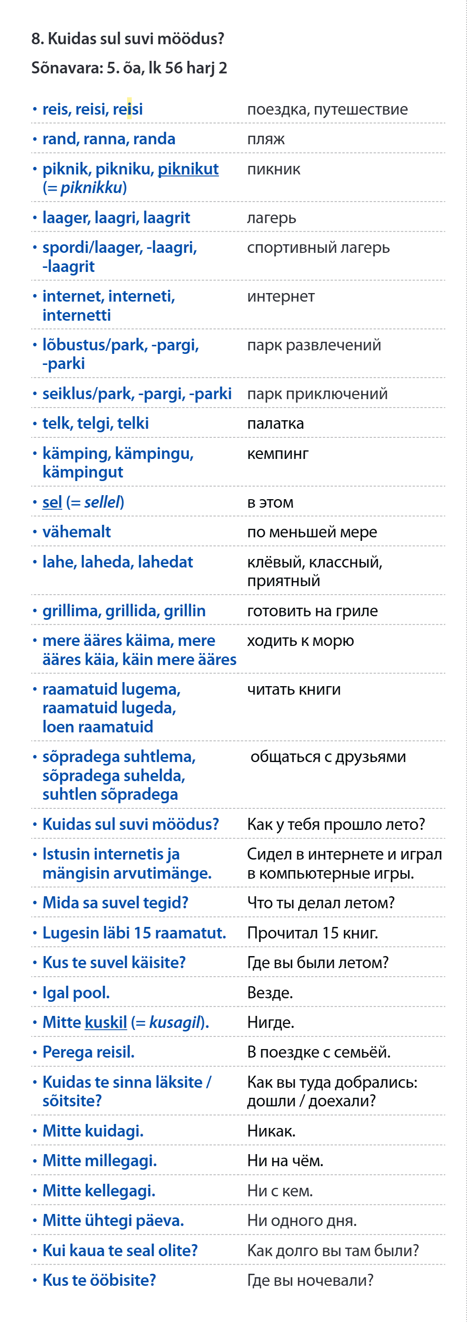 8. Kuidas sul suvi möödus? Sõnavara: 5. õa, lk 56 harj 2