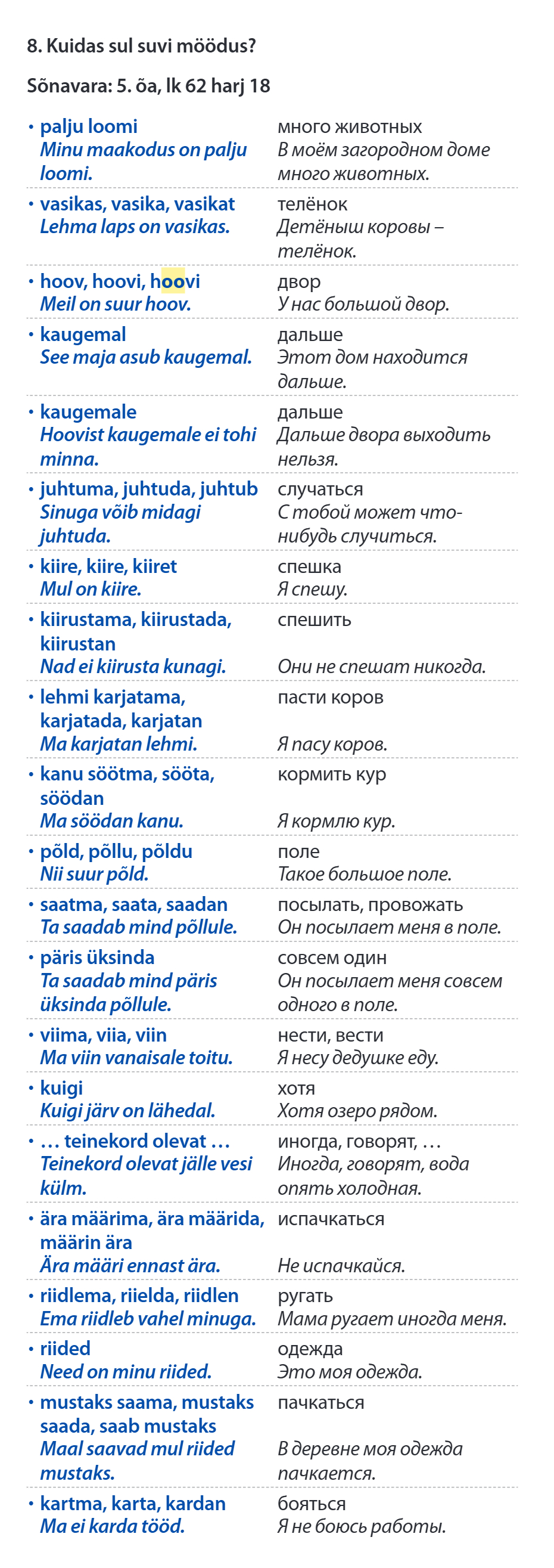 8. Kuidas sul suvi möödus? Sõnavara: 5. õa, lk 62 harj 18
