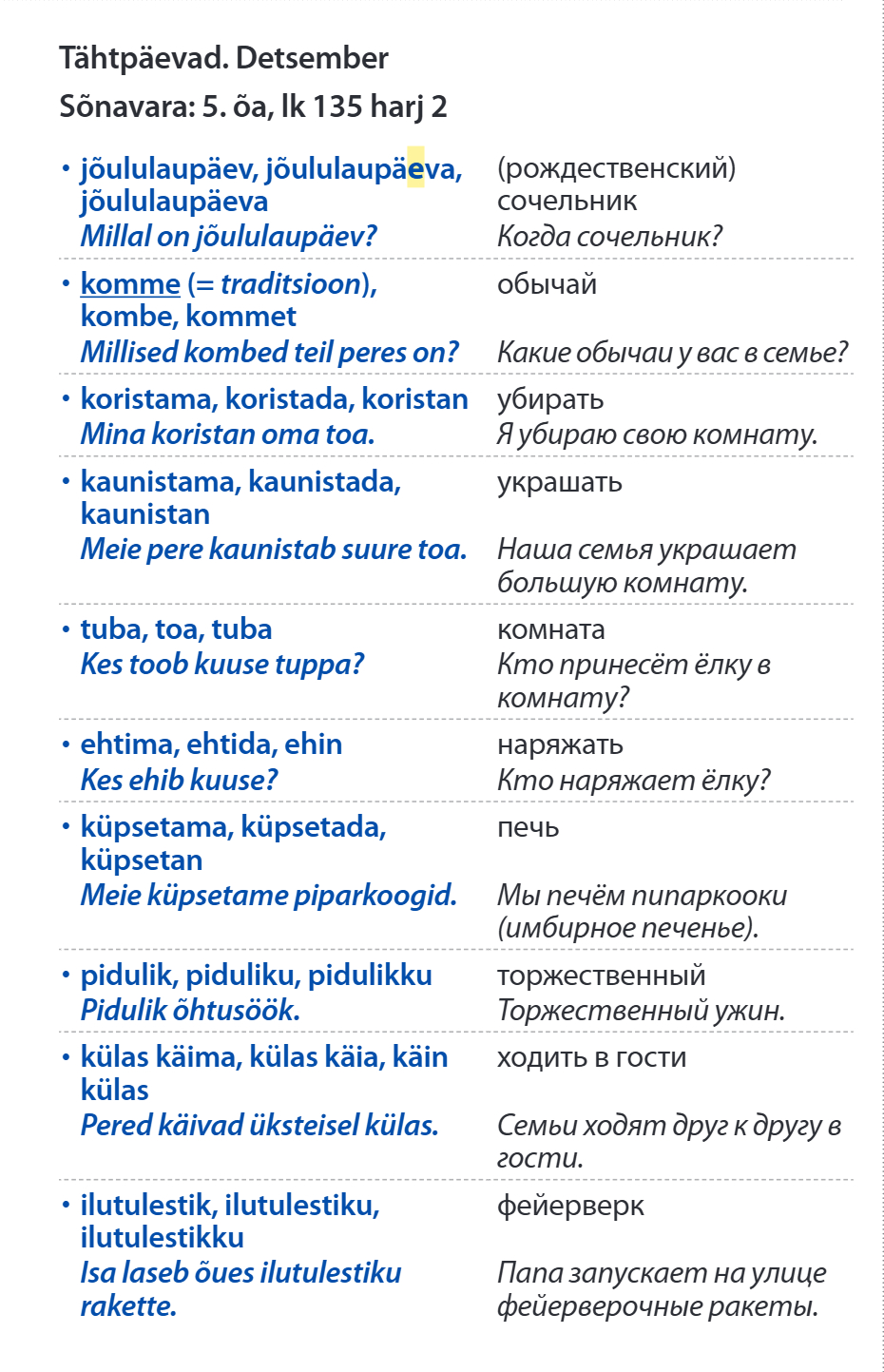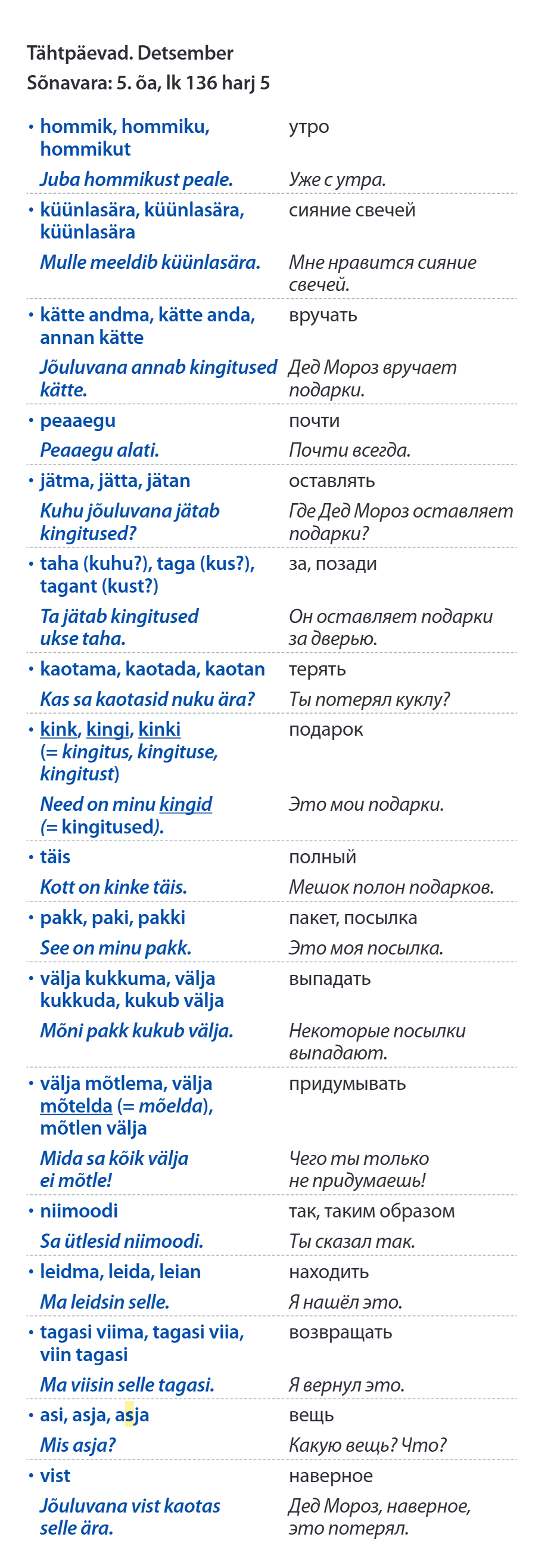Tähtpäevad. Detsember Sõnavara: 5. õa, lk 136 harj 5