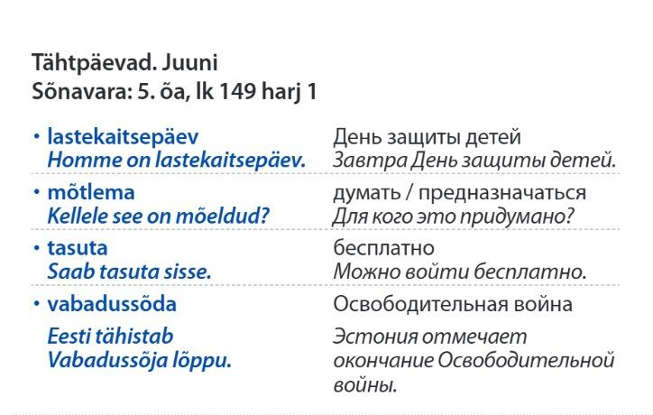 Tähtpäevad. Juuni Sõnavara: 5. õa, lk 149 harj 1