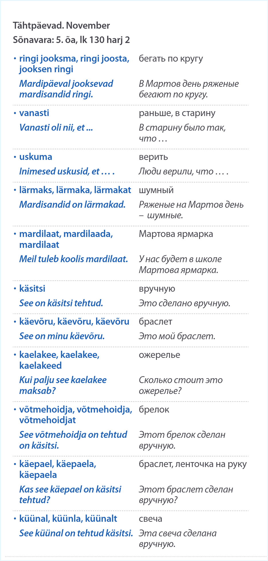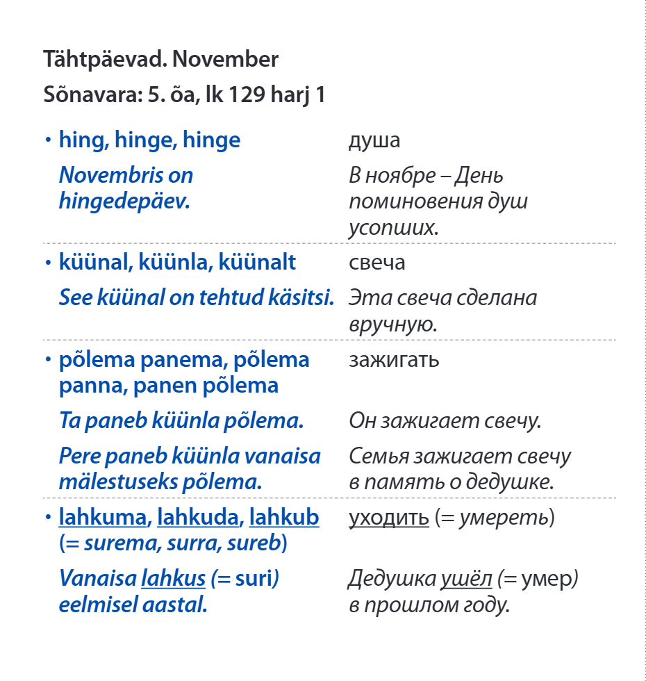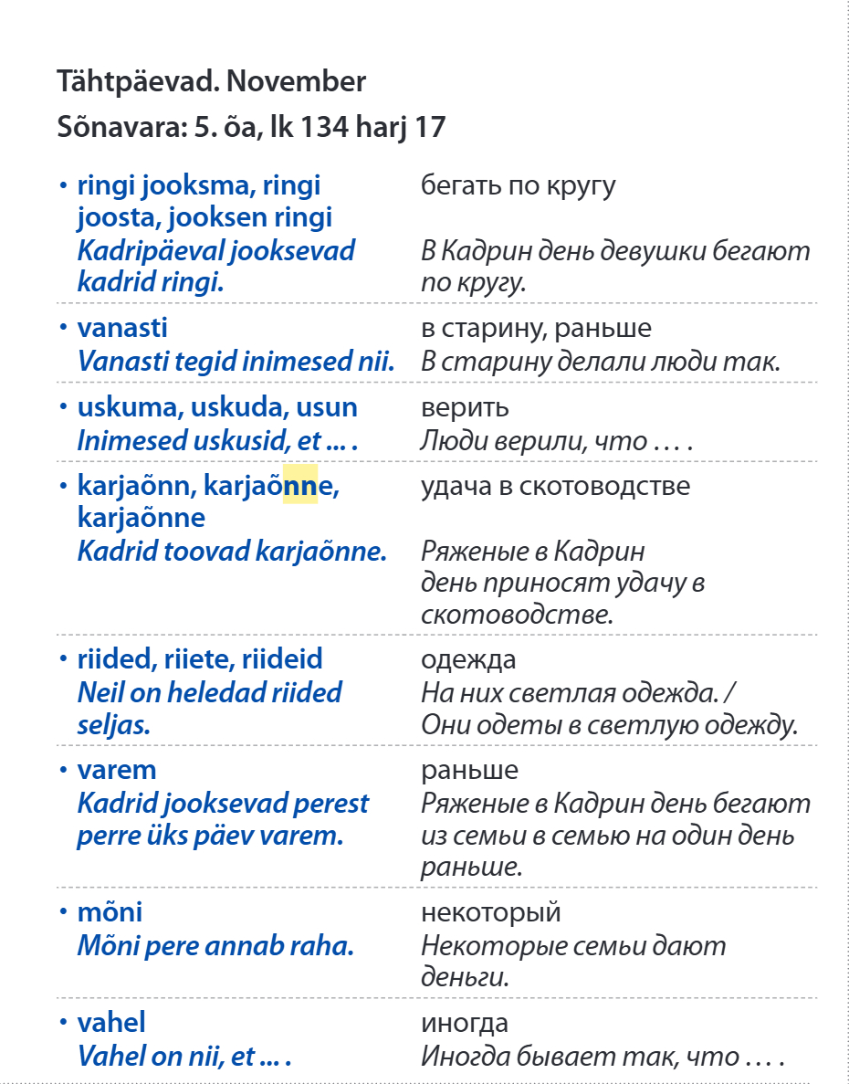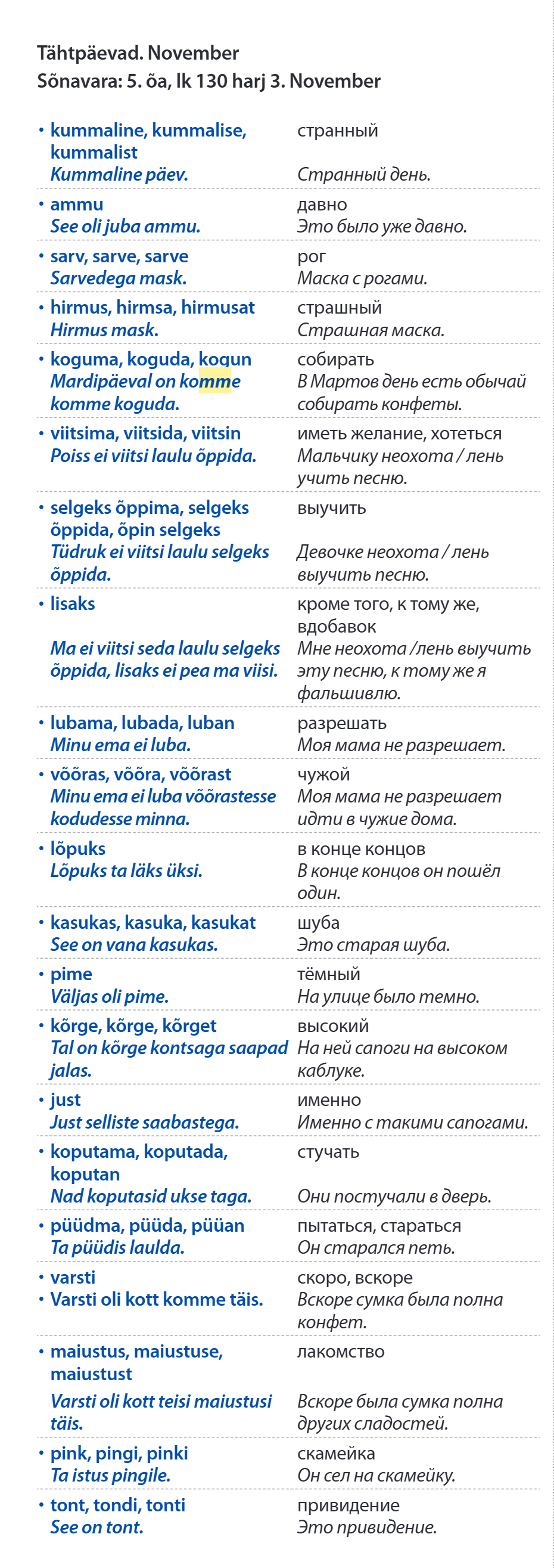 Tähtpäevad. November Sõnavara: 5. õa, lk 130 harj 3