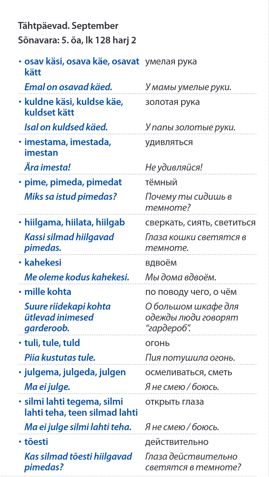 Tähtpäevad. September Sõnavara: 5. õa, lk 128 harj 2
