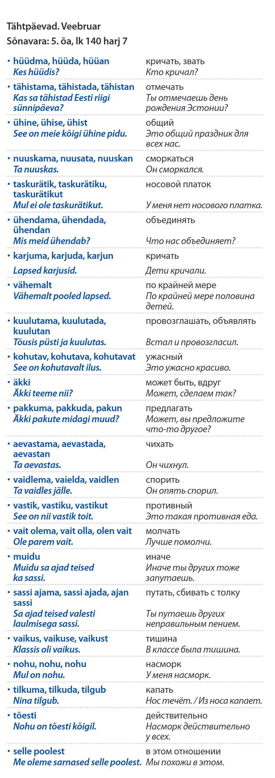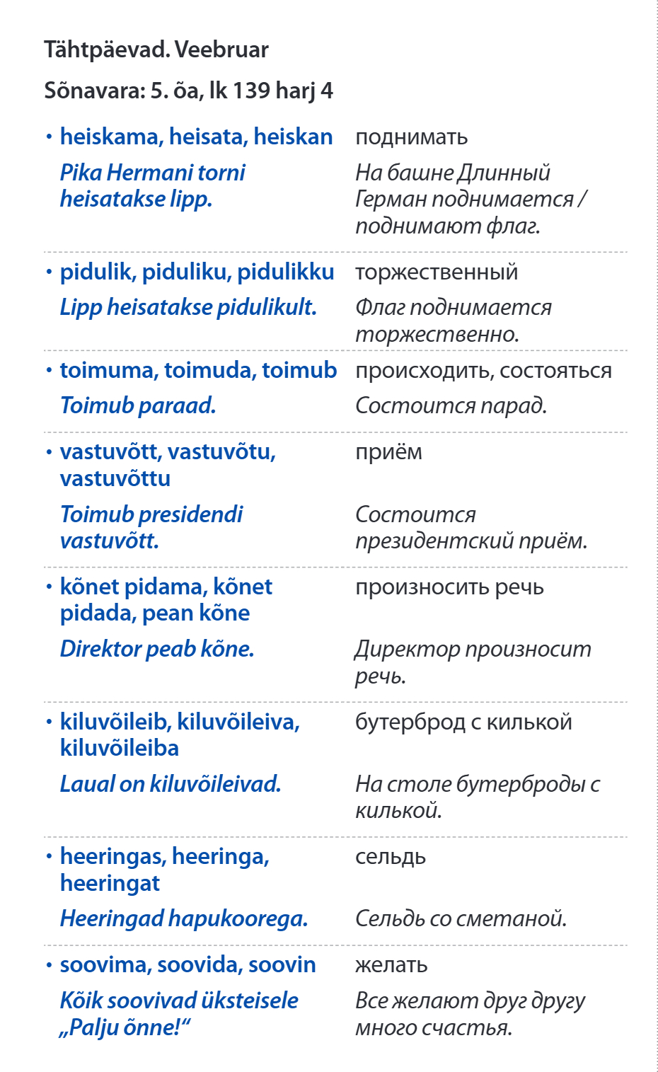 Tähtpäevad. Veebruar Sõnavara: 5. õa, lk 139 harj 4
